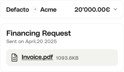 Connect your existing tools (bank account, accounting software, invoicing). Defacto analyses your financing capacity in real time and gives you an immediate answer.