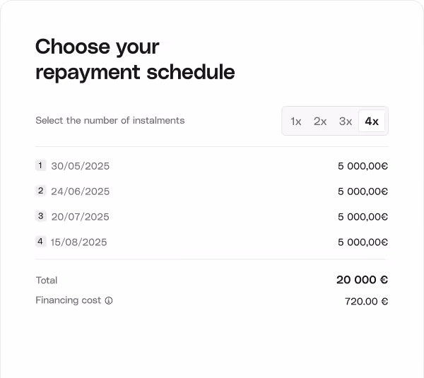 Pay your suppliers today, repay over up to 4 months. Protect your cash flow without holding back your purchases.